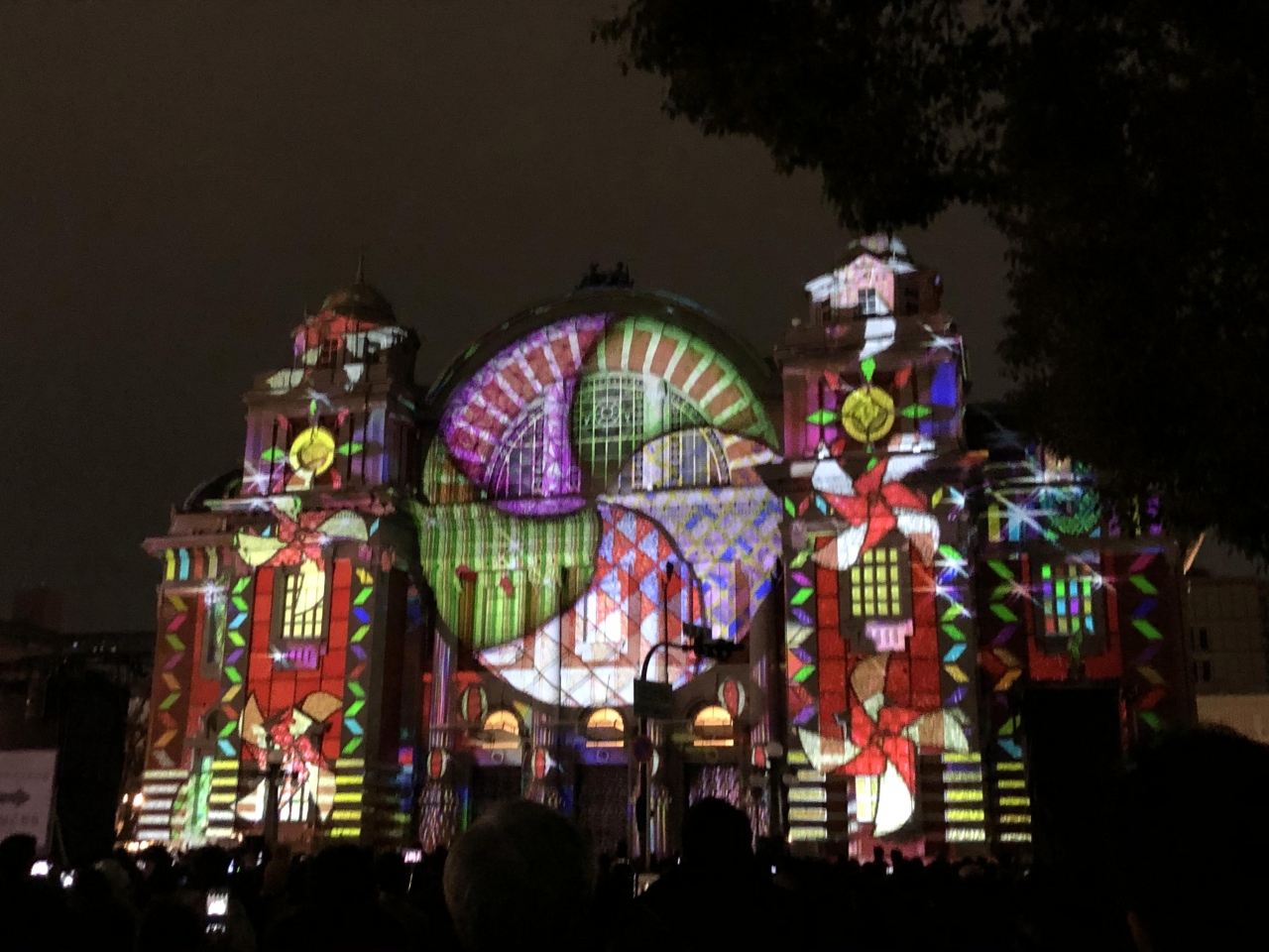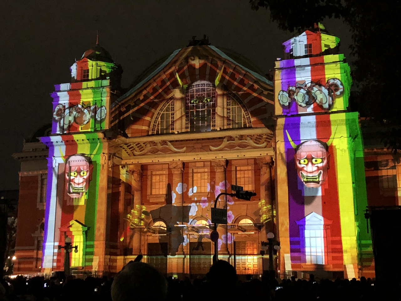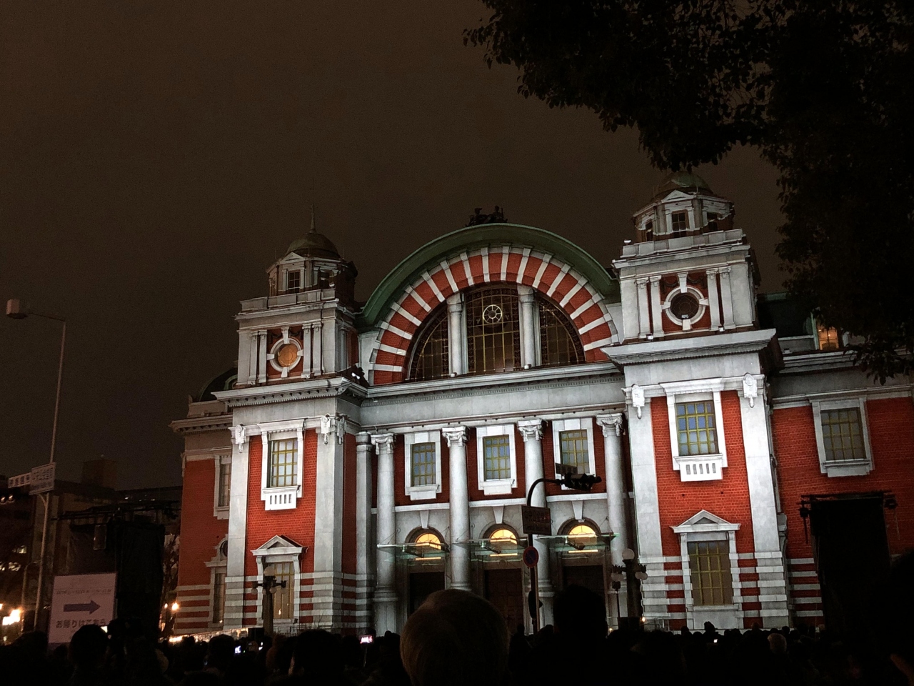 メインは中之島公会堂を中心とするエリアで、プロジェクションマッピング映像は2部制になっていて、第1部は次の世代へ届ける「つぐ」をテーマに、水都大阪や歌舞伎等の様々な魅力の交差、交流を表現しているようです。- 旅行時期