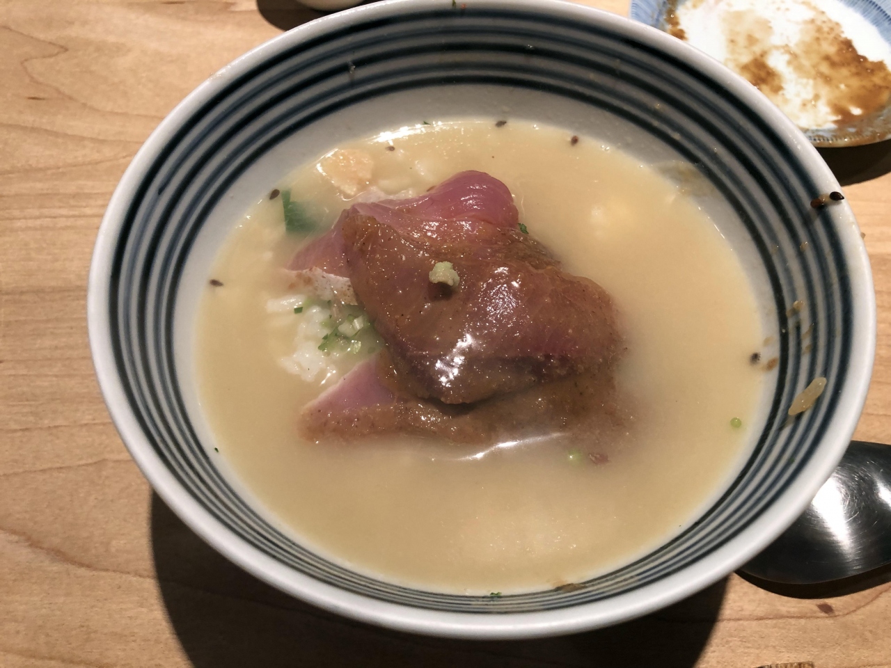 厚く切られた刺身はゴマたれでいただき、刺身を2枚ほど残して後の鯛茶漬けに残しておくのがこちらの作法のようです。