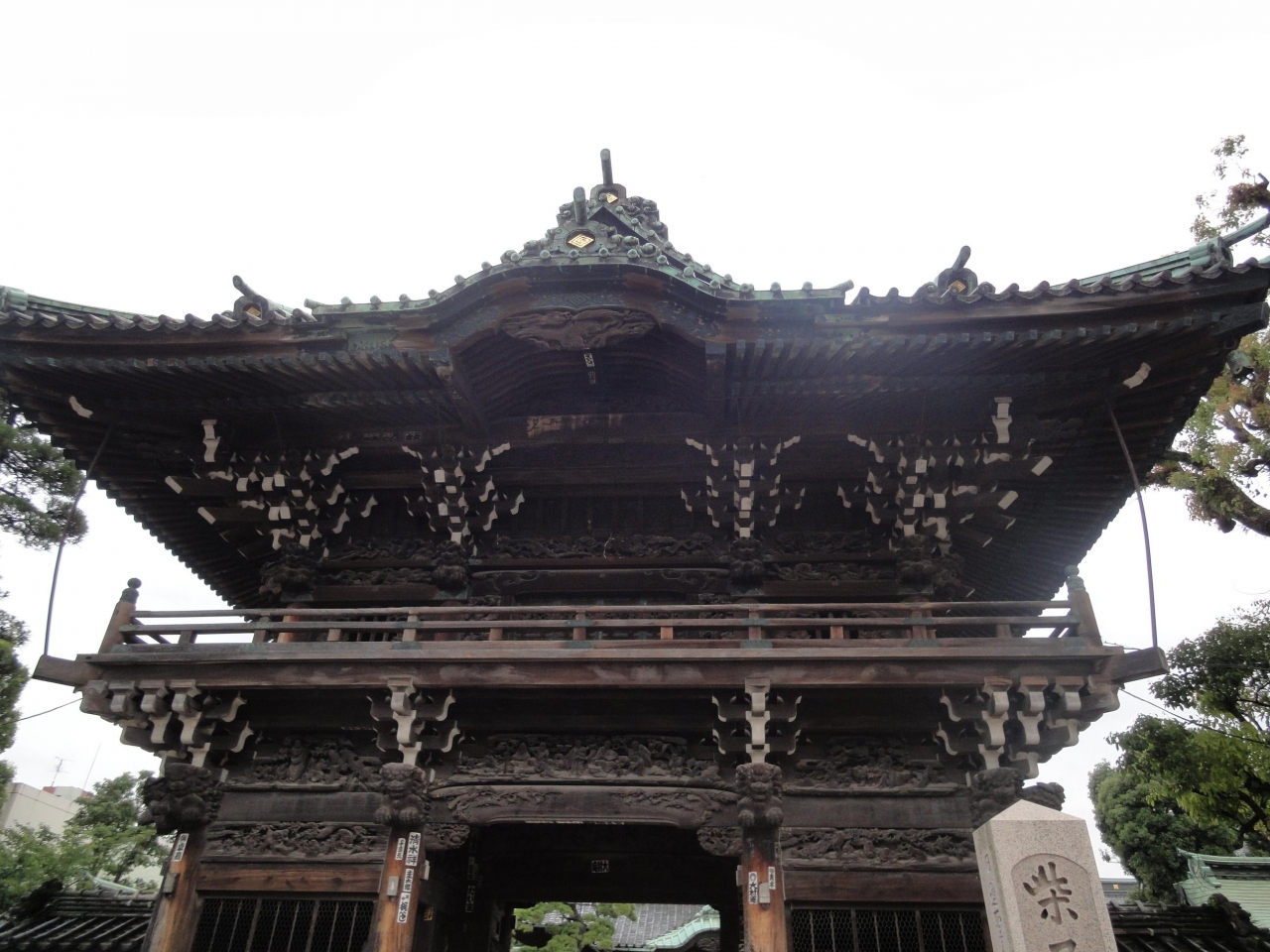 題経寺の建物は、大部分が明治以降の建築で、二天門、帝釈堂等は彩色を施さない素木造で一見地味ですが細部には精巧な装飾彫刻が施されていて、帝釈堂内殿の外部は東・北・西の全面が装飾彫刻で覆われています。