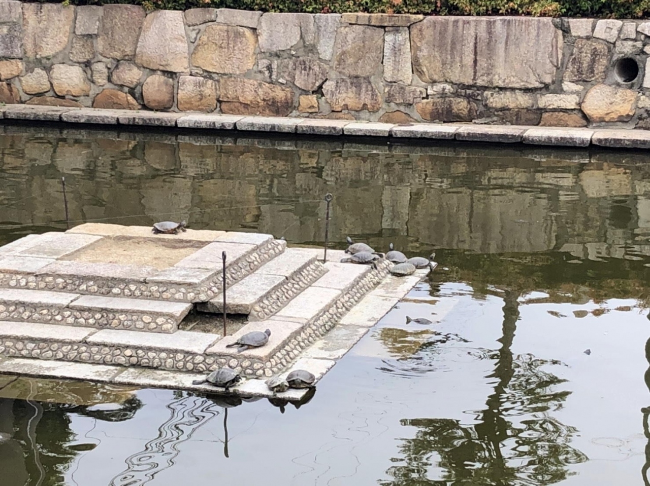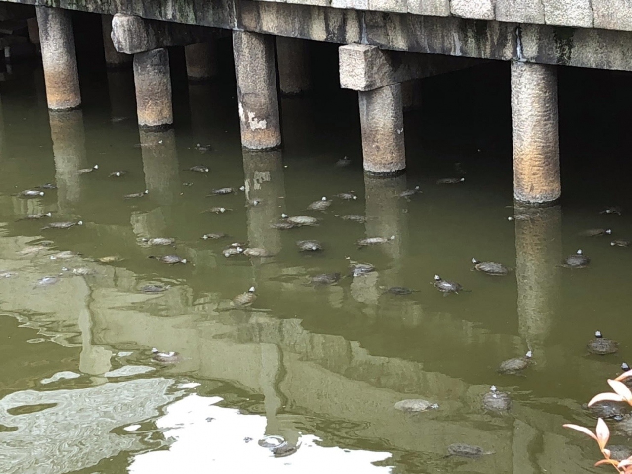 仏教には捕まえた魚・鳥・獣を野に放す「放生会」というイベントがあり、その際に池に亀が放されてきたので、亀がたくさんいるのだと思います。- 旅行時期