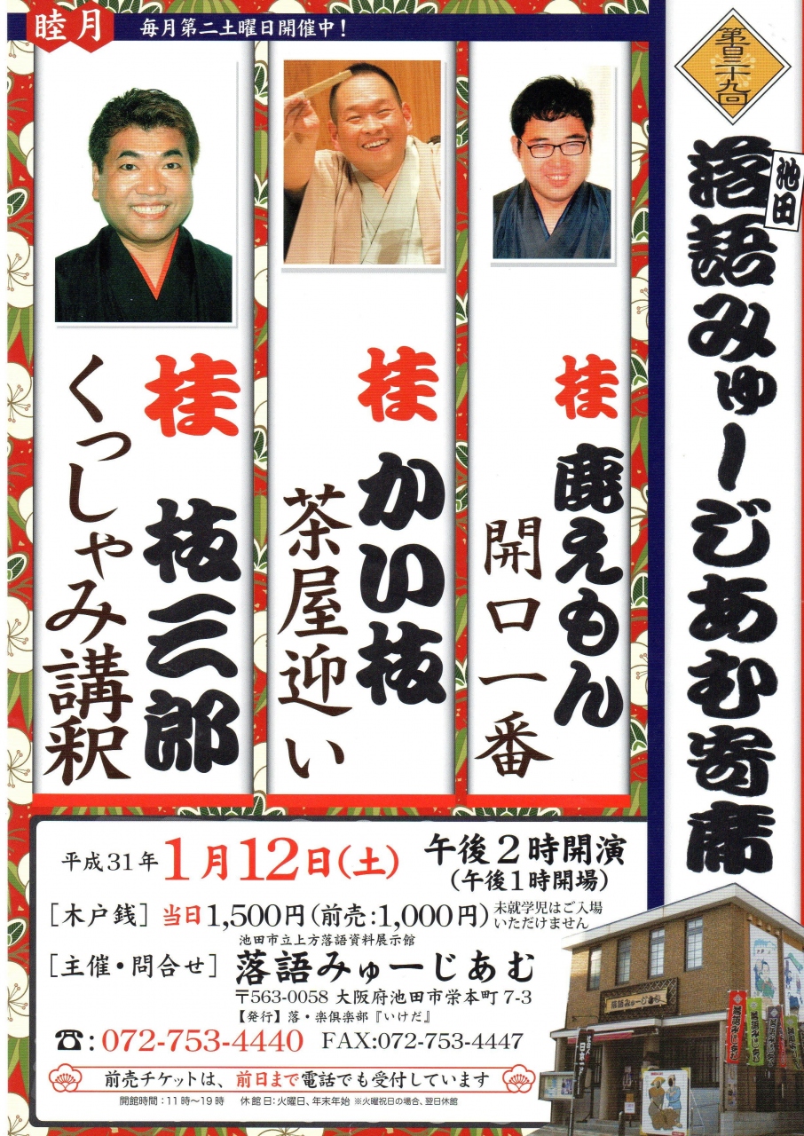 館長は池田にゆかりのある桂文枝師匠で、結構人気のようで上方落語を楽しめます。