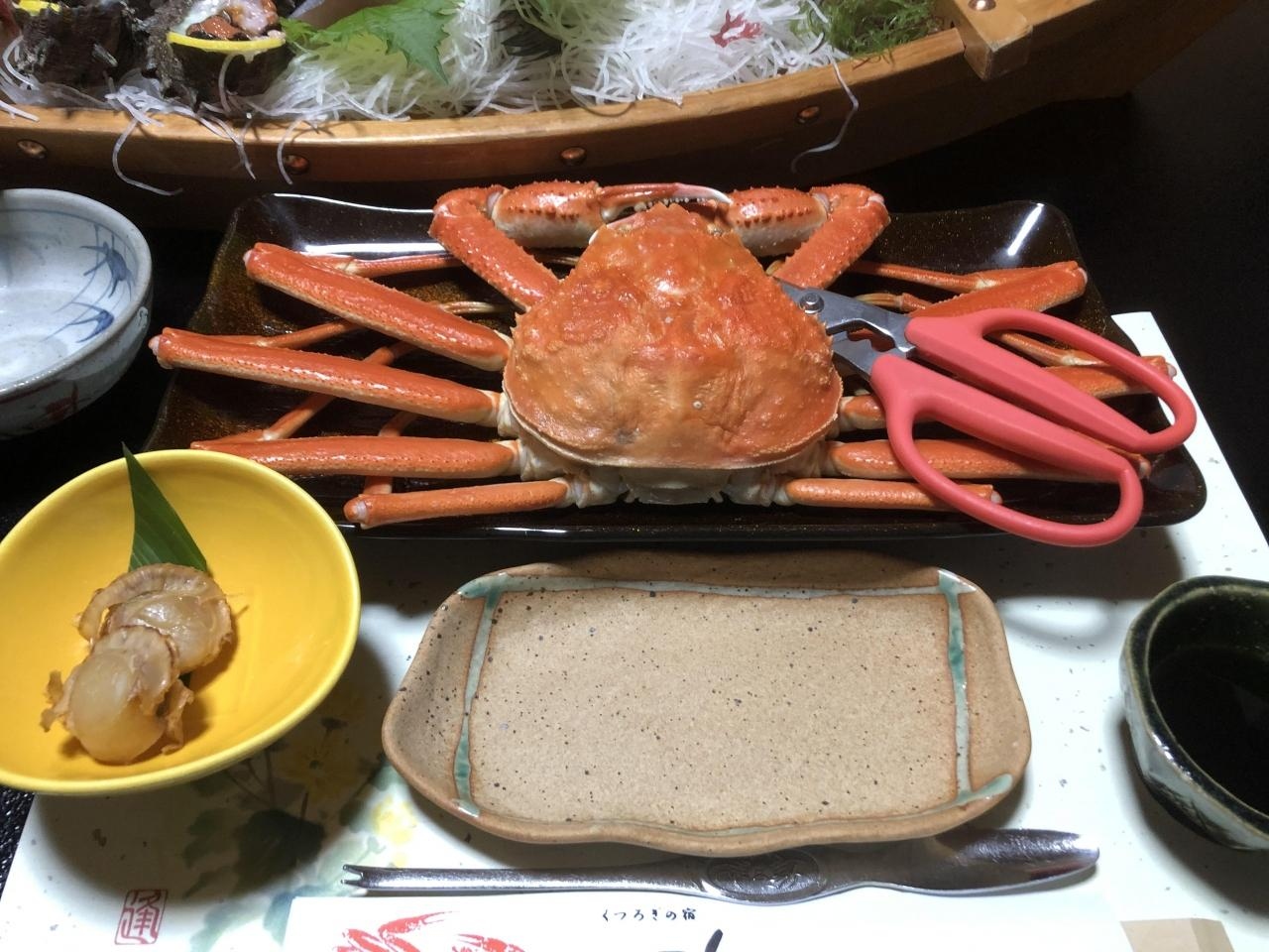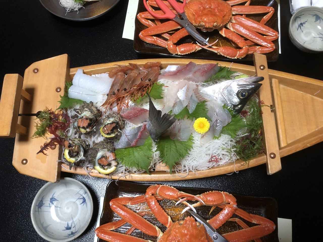 カニ料理のボリュウム、質はタグ付きでは無いですが十分満足できる内容です。平日はカニ1枚のお土産付き、というのも驚きですが、新鮮な魚介の船盛も凄く美味しく、カニだけでは無い宿と思います。