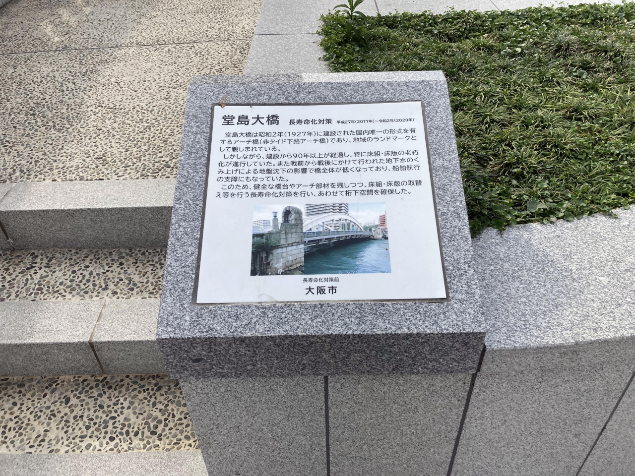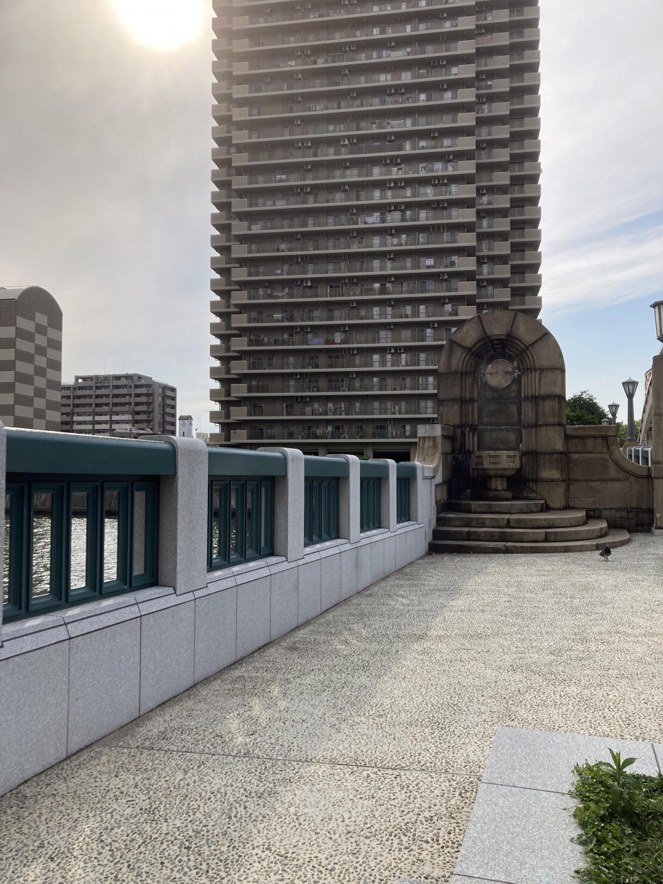 中之島の人にとって、散歩道にもなっていて、1945年6月の大阪大空襲で被災した、欄干の黒焦等の痕跡がまだ残っている歴史ある橋です。