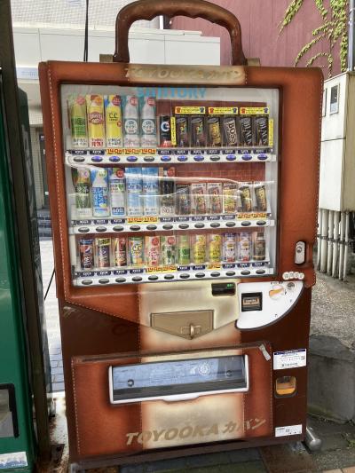 飲み物の自動販売機もカバンデザインとなっています。