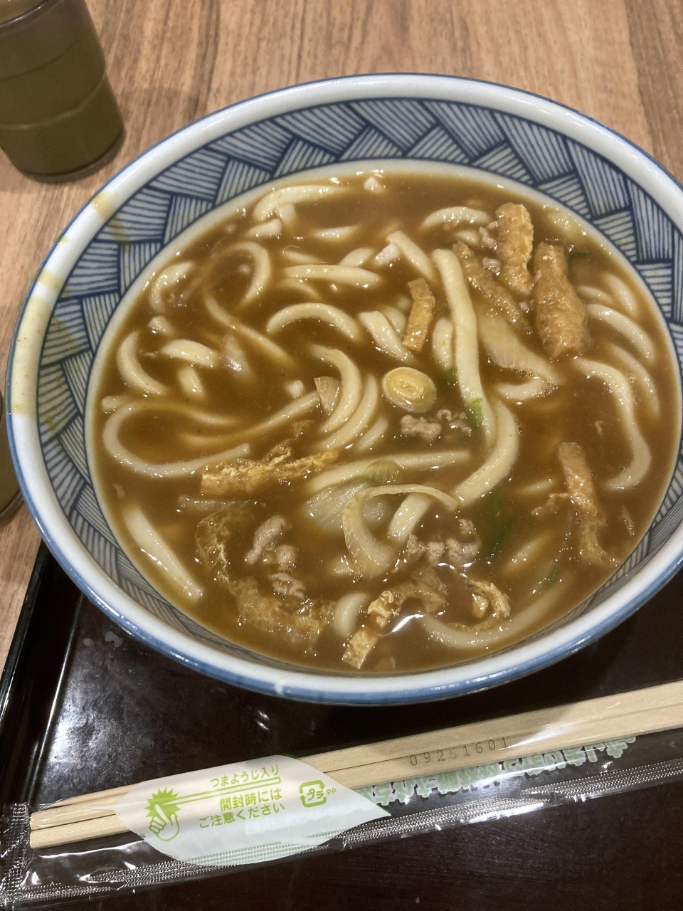 「阪急そば」では、天ぷら、卵入りの「スタミナそば」を食べてい昔を思い出し、肉たまごあんかけ。定番カレーうどんを頂きました。