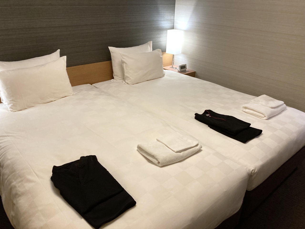 ジャランJALパックの博多往復の航空機+2泊セットで38,800円/2人、という格安プランでしたが、部屋は19㎡と広くは無いですが、コンパクトな造りで、大浴場もあり、高層階ロビーからの眺めは素晴らしく、ベットも快適で気持ちよく滞在する事ができました。