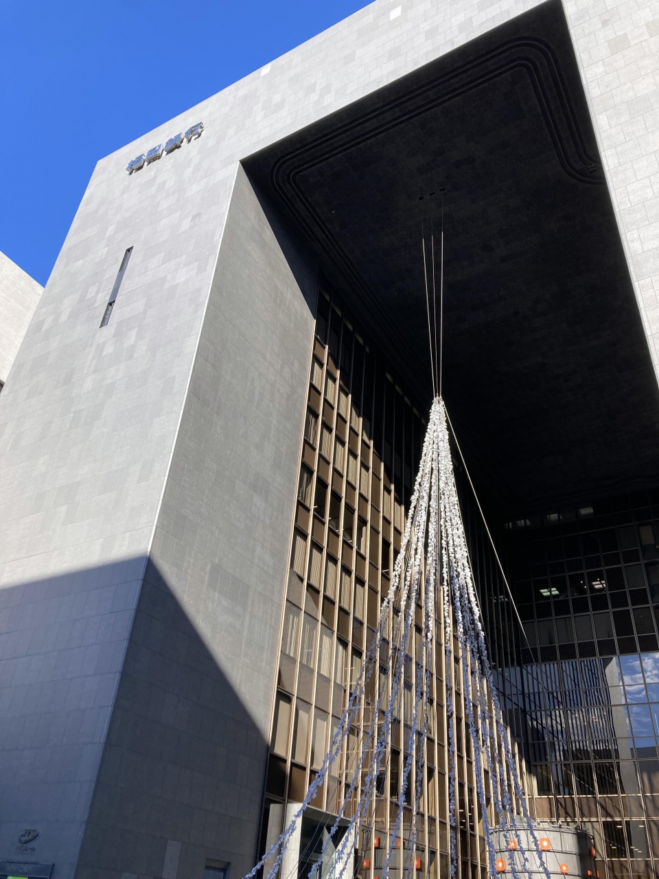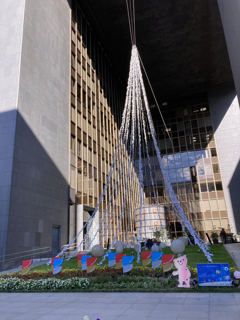 ピロティ軒下の大空間が有名で、冬にはイルミネーションで彩られますが、建物があってこそのイルミと言う感じがします。