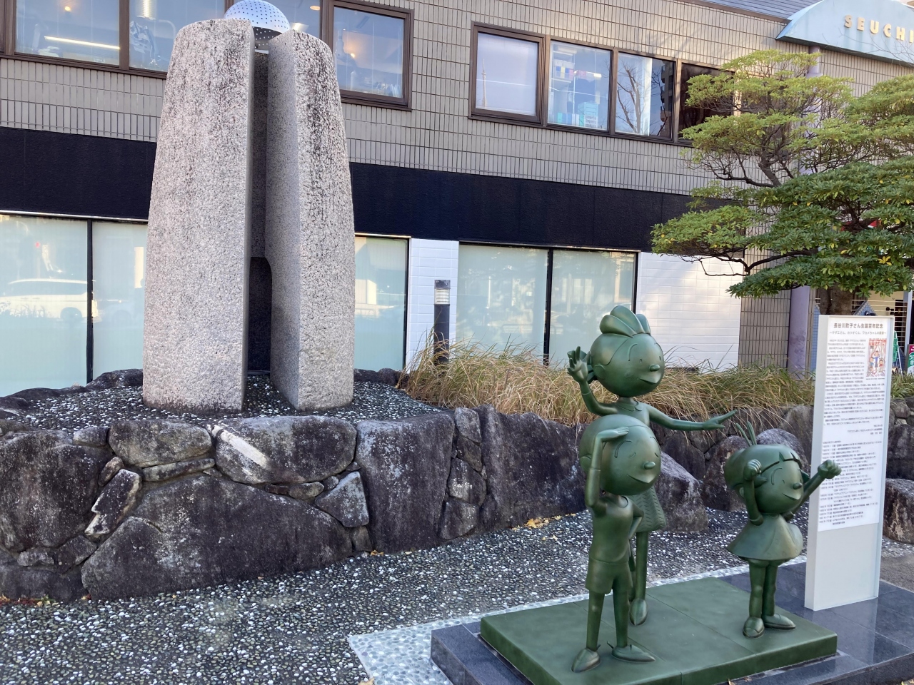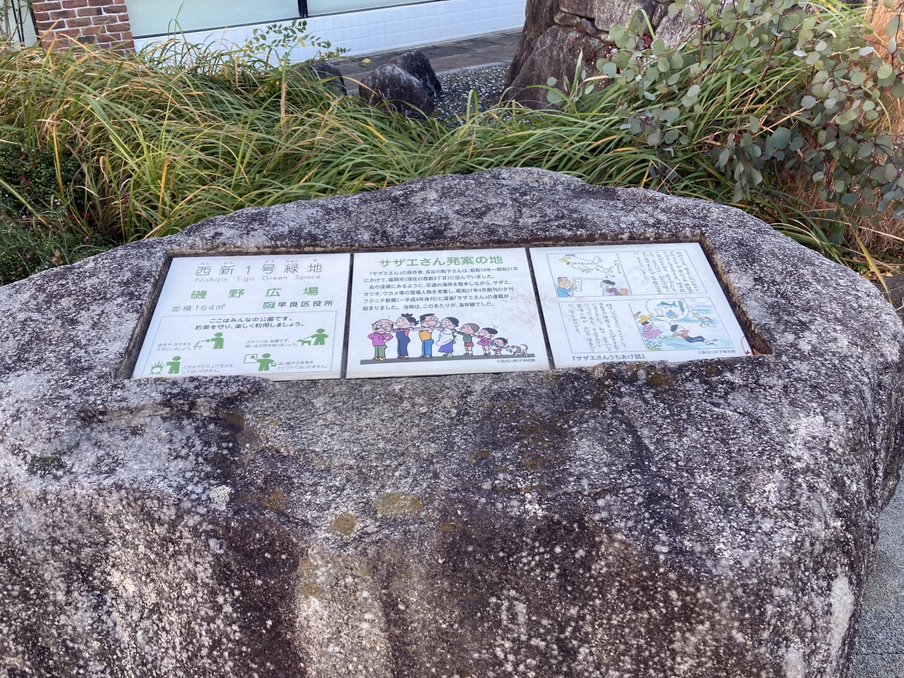 記念碑には、サザエさん誕生のエピソードが綴られています。