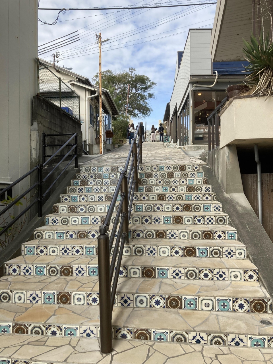 階段の床面は石貼、蹴上部はデザインタイルが張られていますが、名前の由来は何なのか、気になりますね。- 旅行時期