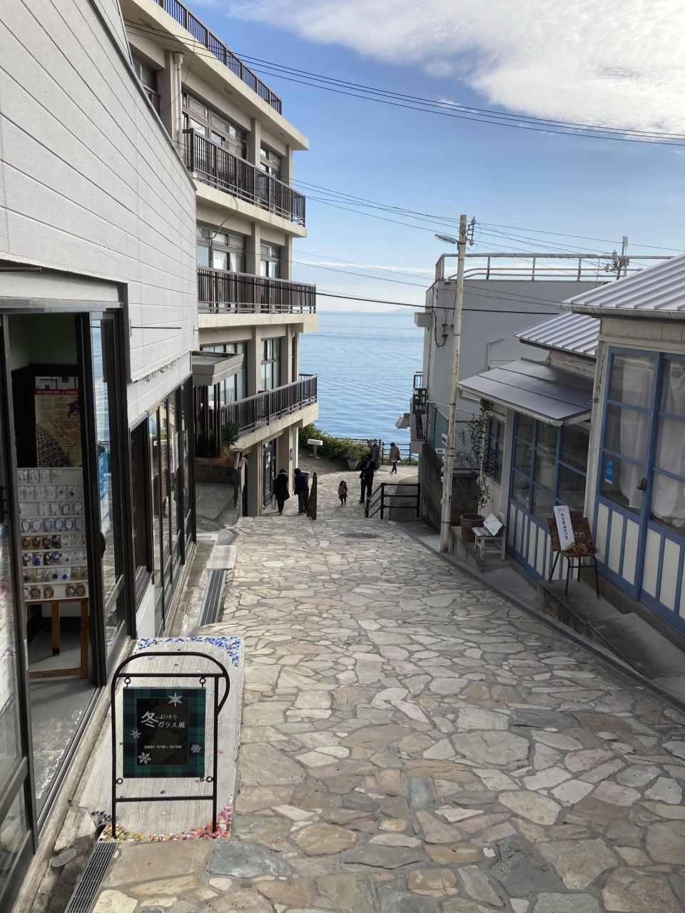伊和都比売神社から瀬戸内海へつながる小さな坂の名称のようで、スタート地点から海が見下ろせ、坂道沿いにはカフェやジェラートショップ、ガラス舎等が並ぶ観光地となっています。