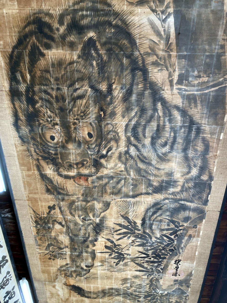 天井の大額は、赤穂最大の画人 法橋義信の「竹に虎」代横額 細井光沢の書で、迫力があります。- 旅行時期
