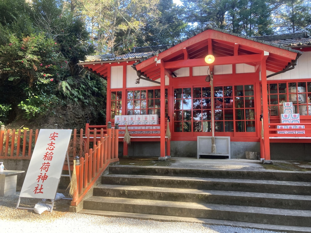 伊和都比売神社の鳥居をくぐり通り抜けると階段が現れます。