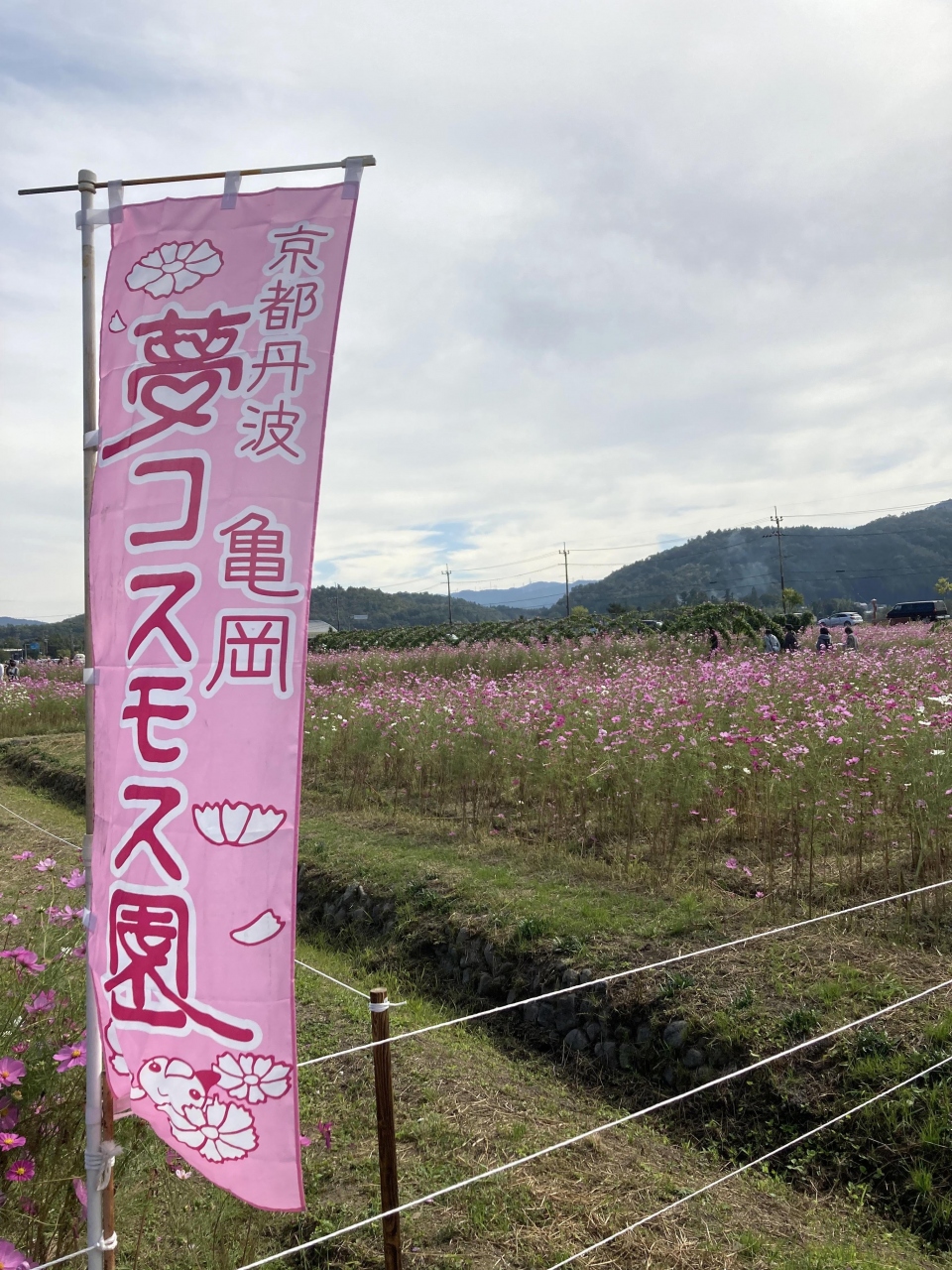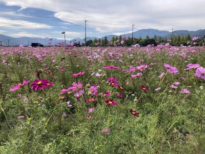 在来種は白、ピンク、赤の3種類でしたが、品種改良により黄色や黒、チョコレート色等、様々な種類が一面に咲き誇る様は、これ位の広さがあるとより感じる事が出来ます。