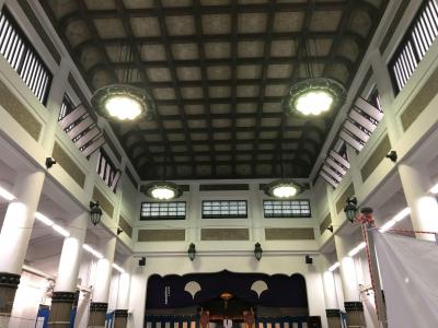 歴史ある両国駅の旧駅舎に、江戸の町屋を意識した吹抜け空間に原寸大の土俵が作られています。