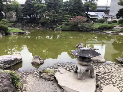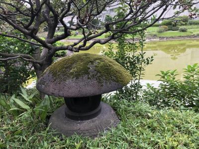 潮入り回遊式庭園として整備された大名庭園で、小島の浮かぶ心字池を老樹と散策路が囲む構成となっていて、雪見灯篭が配置され、池には鯉、亀が泳ぐ人工的に水位の干満が再現された庭園で、園内見どころが多いです。