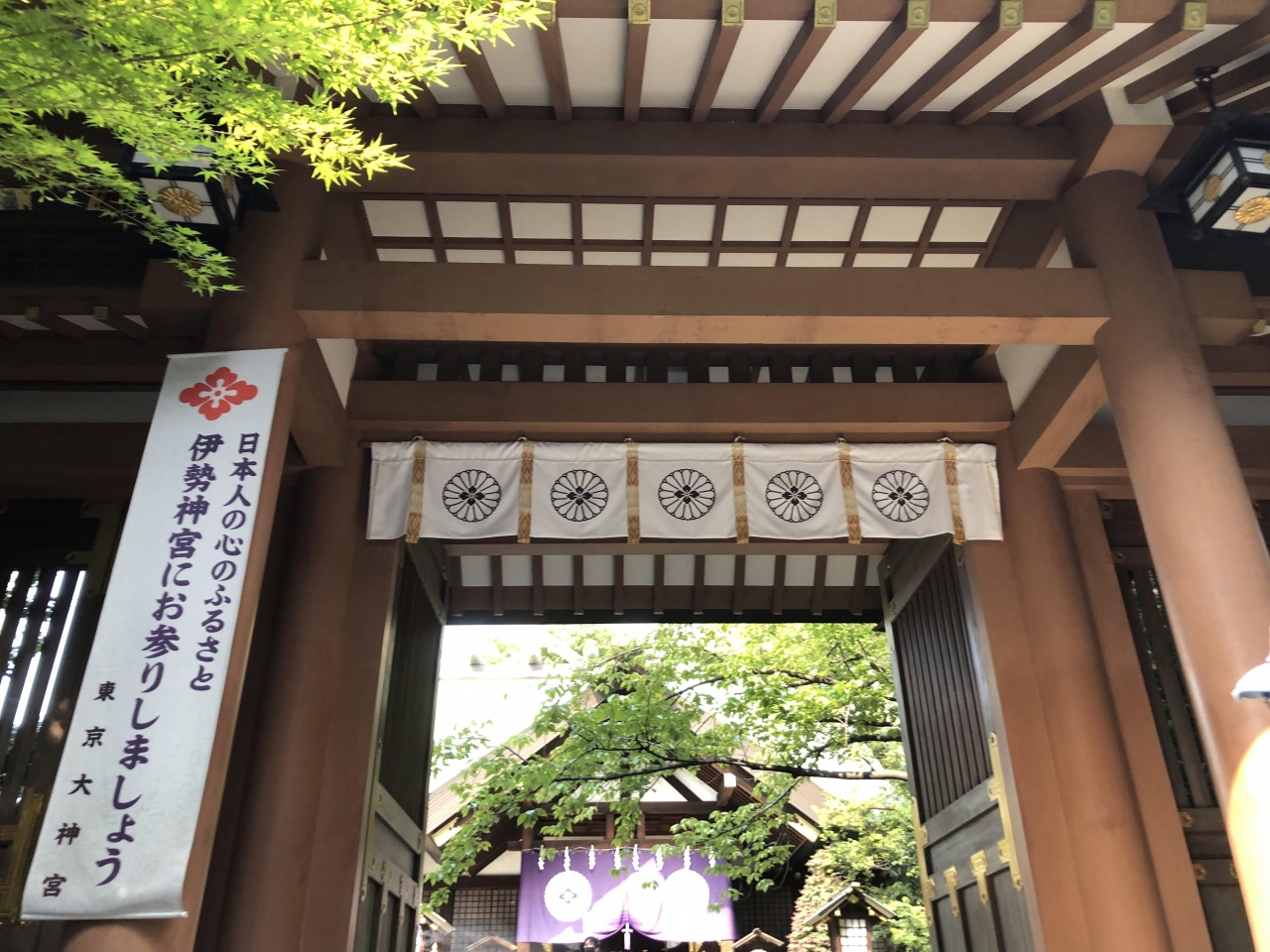 江戸時代は伊勢神宮への参拝、というのが生涯かけての願いであったことからか、明治天皇の裁断により、明治13年東京における伊勢神宮の遥拝殿として創建されました。