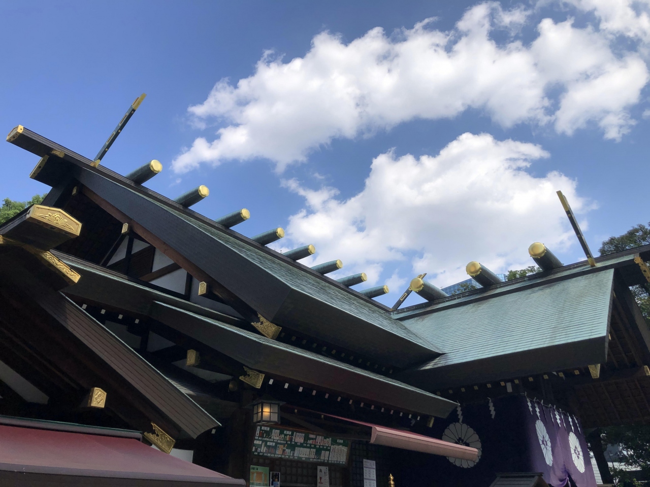 神明造りであり、千木と勝魚木が際立っていて、千木は内削ぎで、鰹木の本数も8本で偶数なので女神様が祀られているということですね。