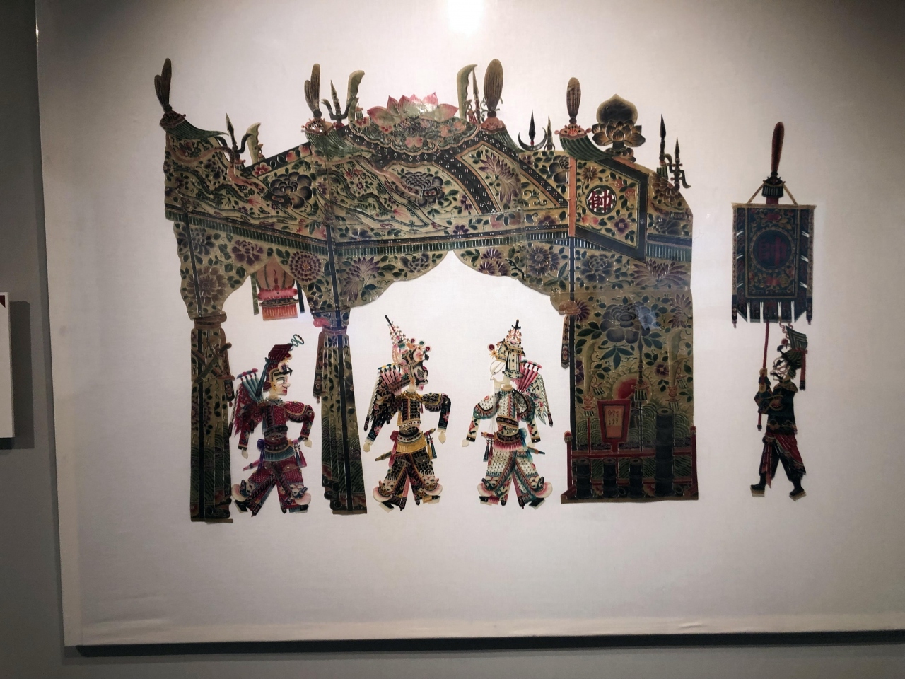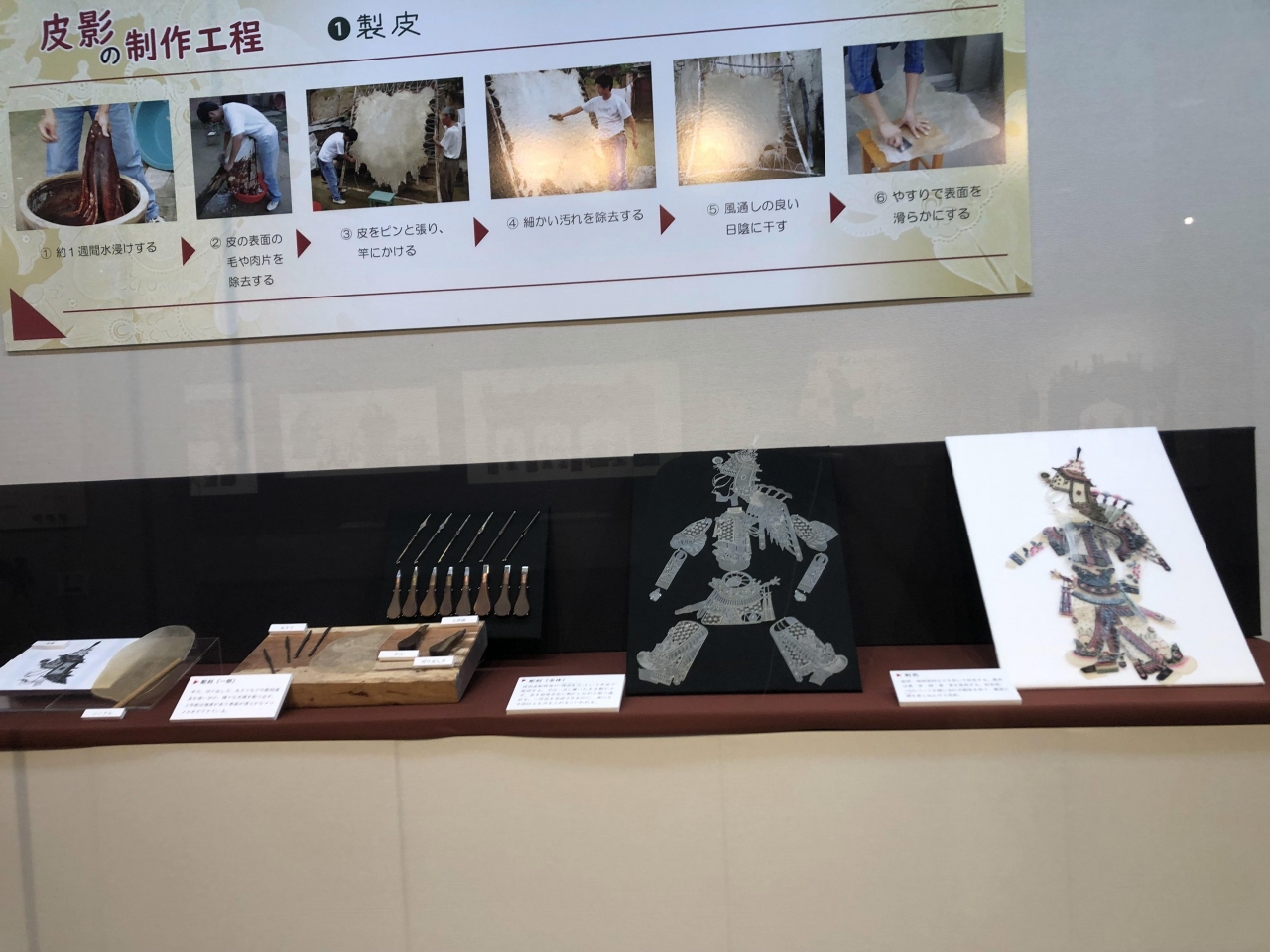 皮影戯には、牛やロバの皮をなめして彫刻や彩色を施した影絵人形「皮影」が使われていて、その展示がされているようです。
