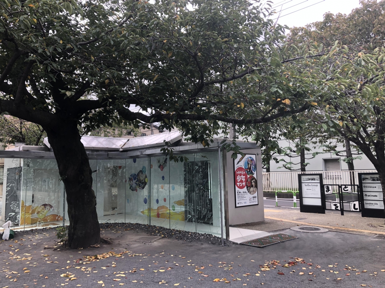 公園のトイレも、グラフィックシートを張替えできる白い壁で、マンガ・アニメの情報発信の場を表し、反対側はトキワ荘前にあった落合電話局をイメージした外観となっています。