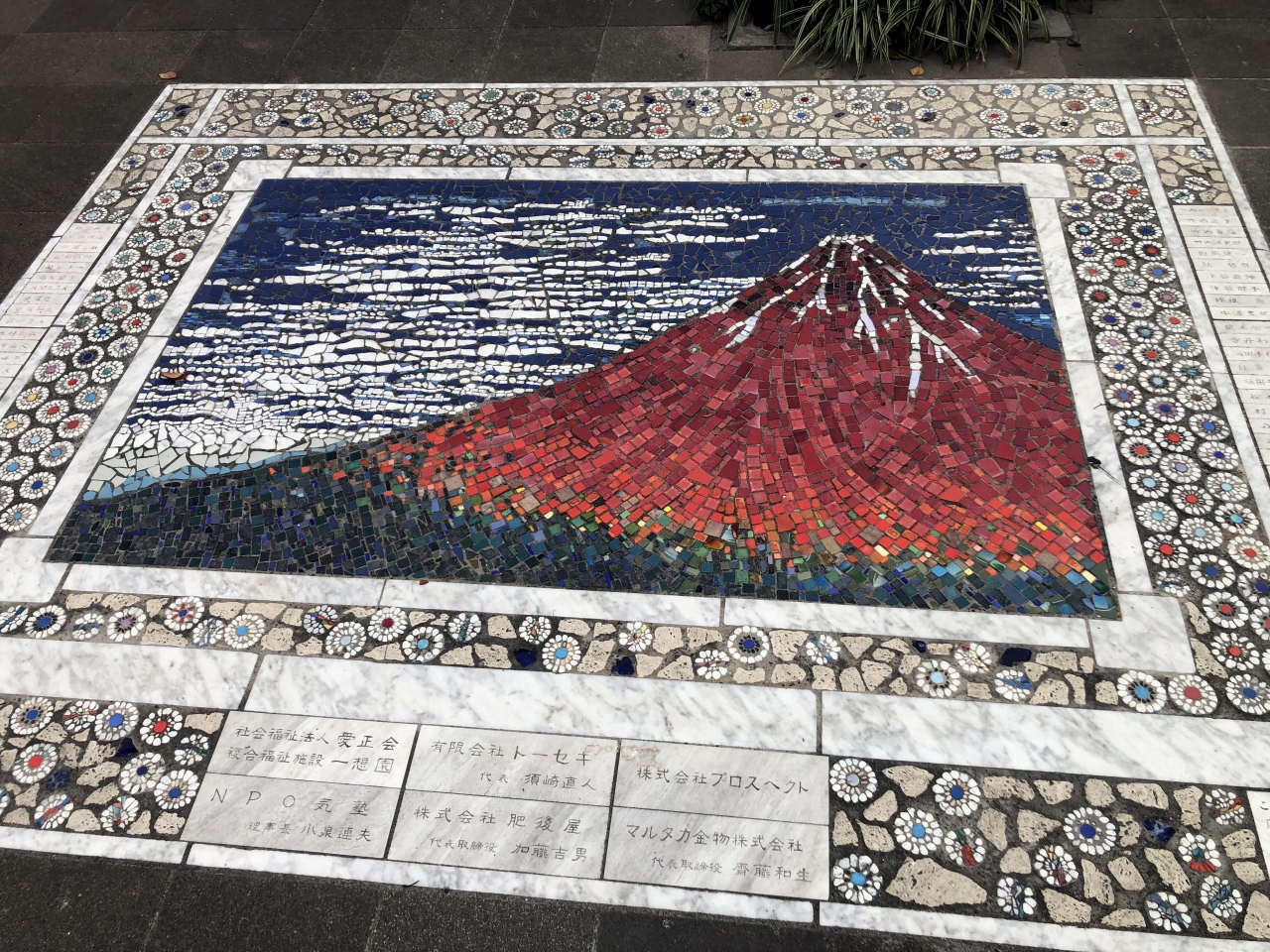 建設地の緑町公園付近は、江戸時代には弘前藩津軽家の上屋敷のあった場所で、北斎は藩主の依頼で屏風に馬の絵を描いたと伝えられて言われている事からこの地になったようです。