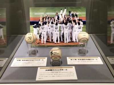 2021年の野球界の話題と言えば、東京オリンピックの金メダルですが、坂本選手のサヨナラヒットサイン入りボールや、8月7日の決勝戦ウイニングボール(稲葉篤紀監督サイン入り)、7月31日のメキシコ戦、坂本選手のホームランボール、選手の寄せ書きサイン等が展示されています。