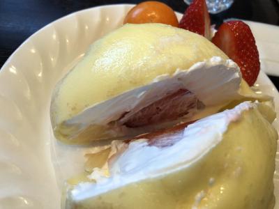 大きい苺を生クリームで包み、クレープ生地で巻いた、見た目はホッコリとしたお饅頭のような感じですが、渋めの珈琲との相性抜群、苺のシーズンしか食べられないのが残念です。- 旅行時期
