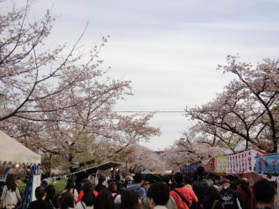 桜もですが、公園降り口から大川沿いは、沢山の屋台が並び賑わいを見せています。私はこちらの方が目的、かも知れません。- 旅行時期