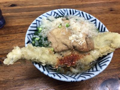 コスパは最高、いりこの出汁と、讃岐うどんにしたら少し柔らかめの麺に、天ぷらを乗せて頂く味は、思い出すだけで直ぐに食べたくなります。- 旅行時期
