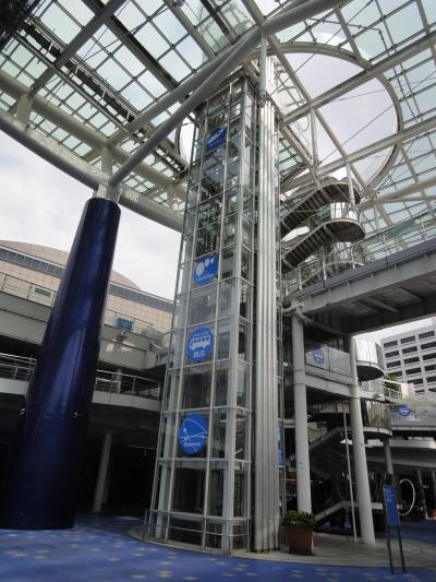 大通りに面しては、広がりのあるシンボル「水の宇宙船」が配置され、上部のガラス面には、水が流れ無数の光の波紋を描き出し、外周の園路で地上14mの空中散歩が楽しめる仕掛けがなされています。
