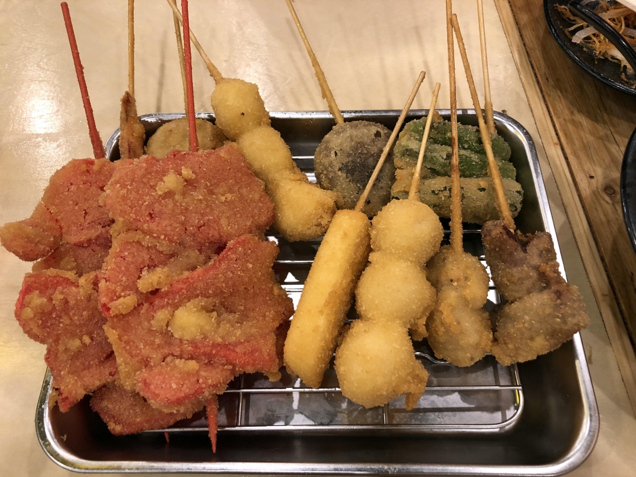 串カツは1本から注文でき、肉から海鮮、ニンニク、野菜、チーズまで、ありとあらゆる種類を揚げています。