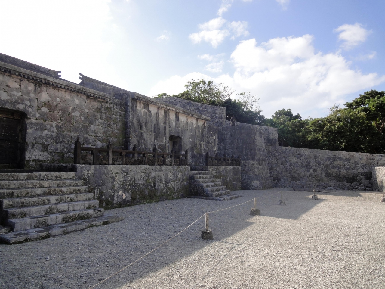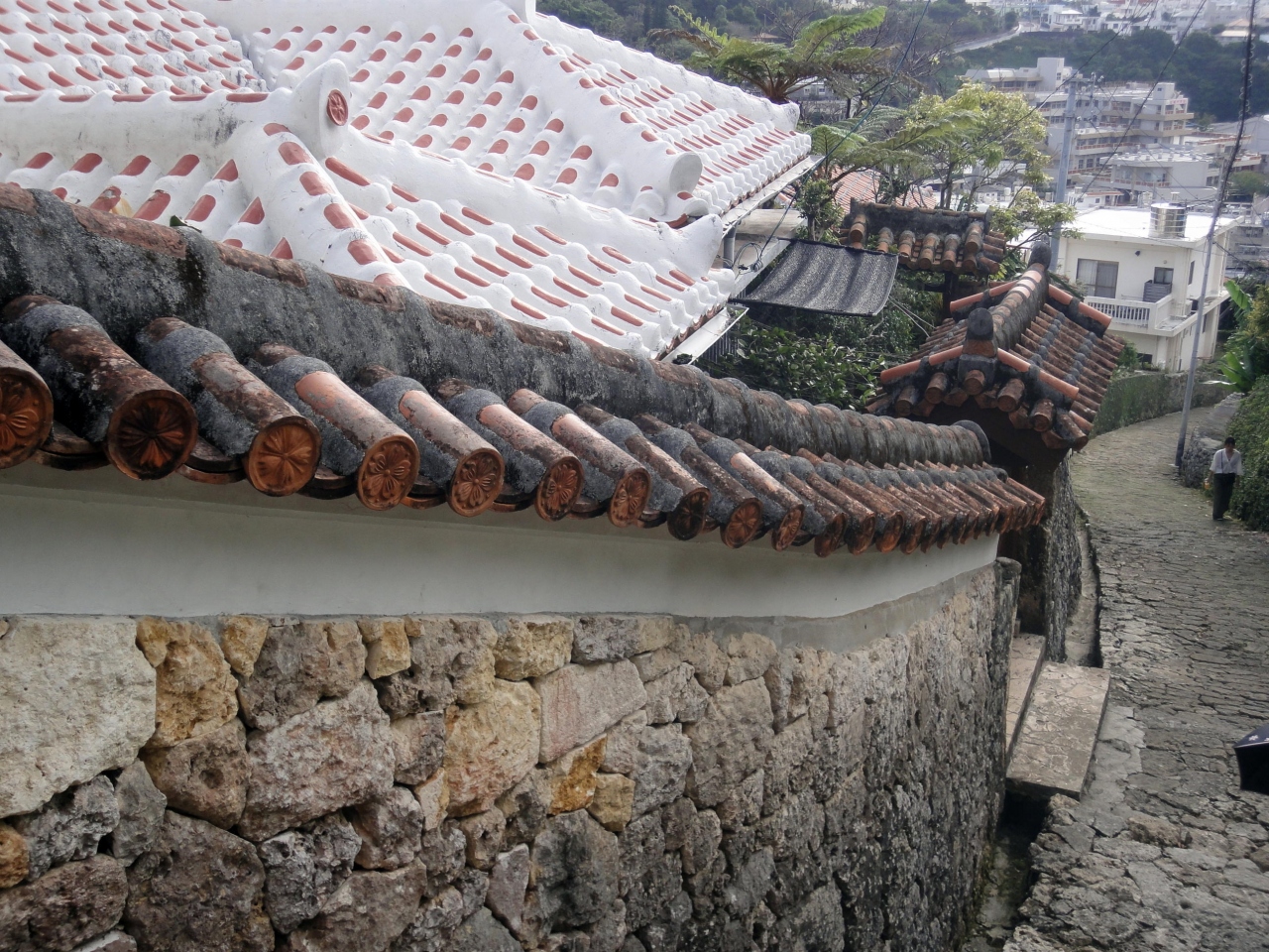 首里城は上部にあるので、車で来た場合、里城公園の駐車場からスタートすると初めは下りですが、帰りは急坂を歩くことになるので、足腰の弱った私達には少しきつかったですが、琉球石灰岩の平石が敷きつめられた道は、風情があり、街並みと調和した警官となっています。時間をかけて、ゆっくり歩くことをお勧めします。- 旅行時期