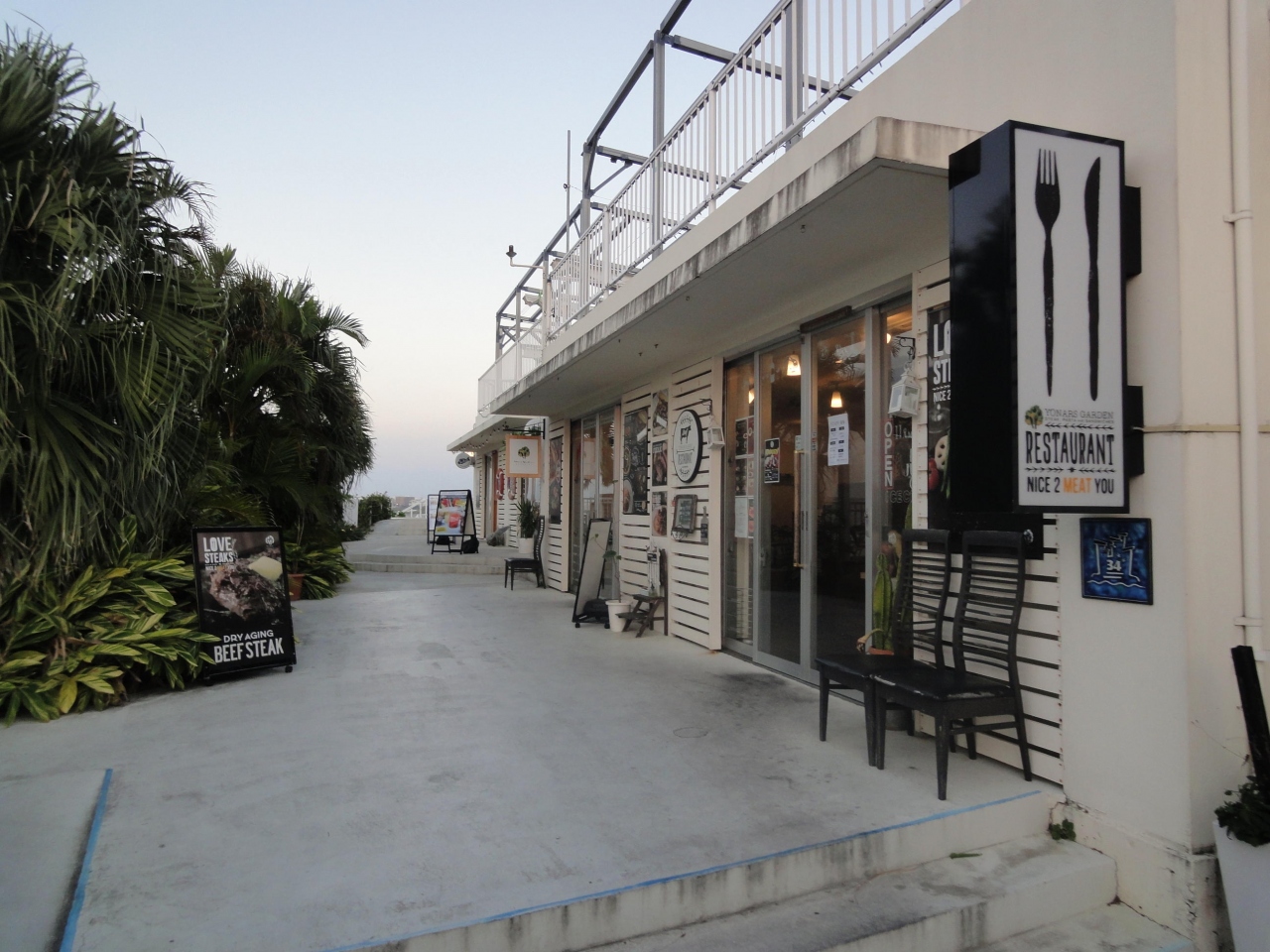 海に向かって雑貨店等、様々な種類のお店が立ち並び、お店の前にはテラスがあり、海を臨みながら食事ができるようになっています。
