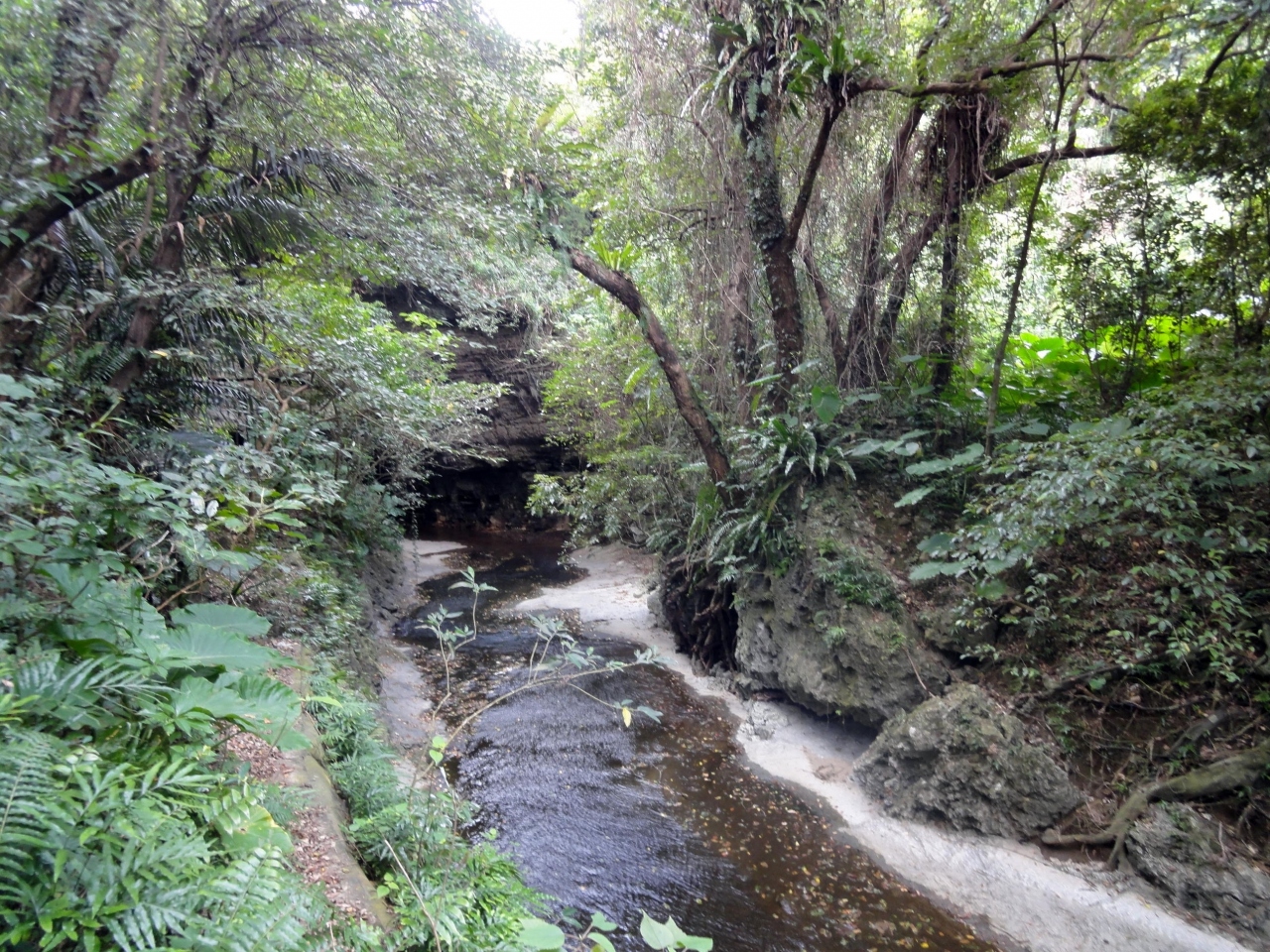 沖縄ワールドの向かい側にある、数十万年前までは鍾乳洞だった場所が崩れてできた、自然が残る亜熱帯の森です。