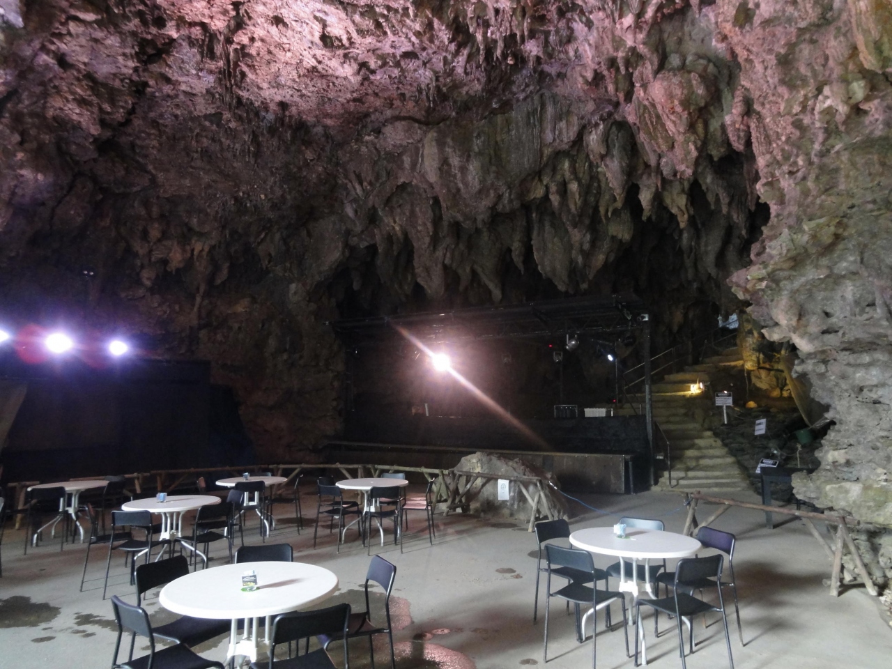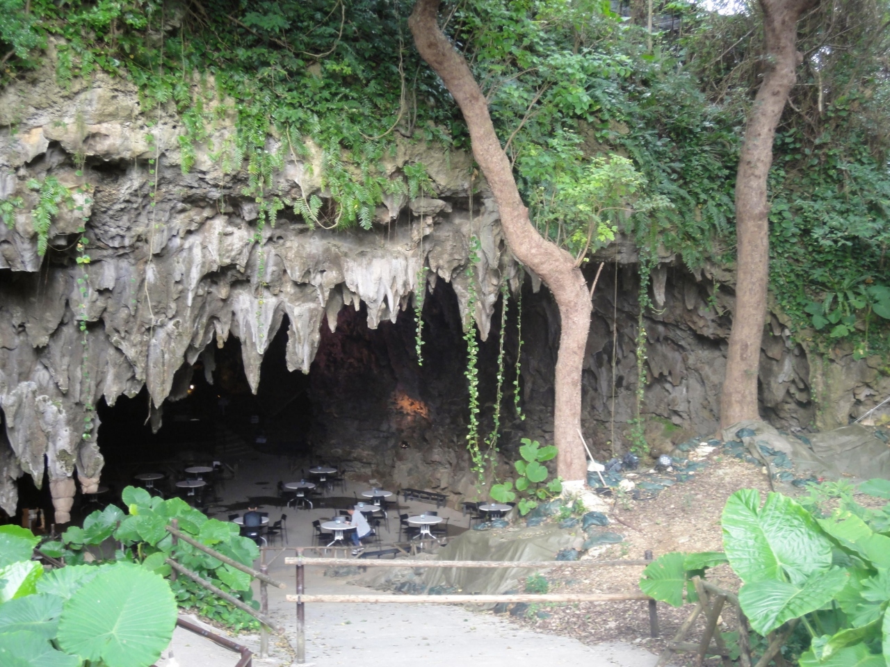 鍾乳洞そのままのオープンカフェで、大きく深く開いた洞窟は、太古の人が未来のために残してくれたかのような空間です。