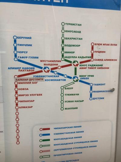 - タシケント市内、メインなところは歩いて行けるけど、チョルスー・バザールなどはメトロ必要。