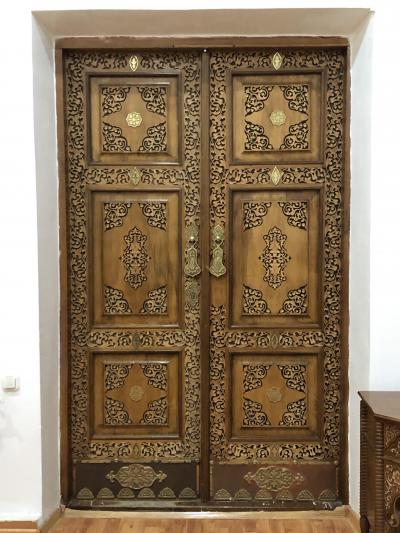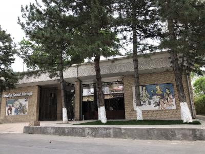 そして、私がウズベキスタンにいる間、どこも素敵で気になった、美しい玄関ドアなどが展示されているところを抜けると、ぐるりと一周した感じで建物の外へ出ます。中庭の周りにぐるりと部屋が連なって、博物館になってます。建物は、展示物、内装の美しさ、など、前の日に行った、サマルカンド郷土史博物館に似ています。