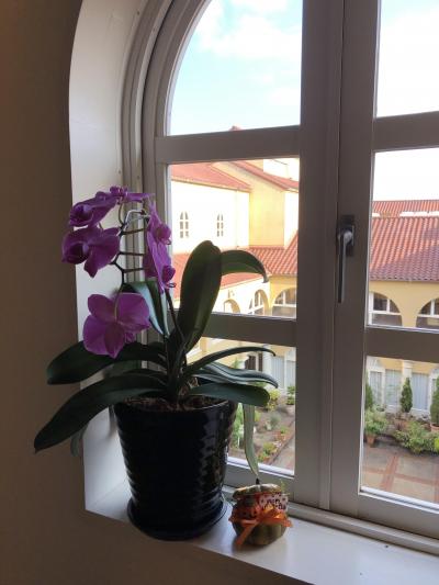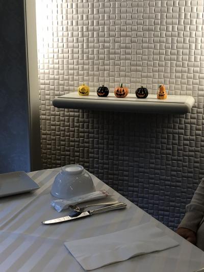 客室の廊下には、手入れのされた観葉植物の鉢が置かれ、ちょうど時期的に、さりげなくあちこちに、ハロウィーングッズが置かれ、楽しませてくれました。今頃きっとクリスマスの飾りつけになってるんだろうな。