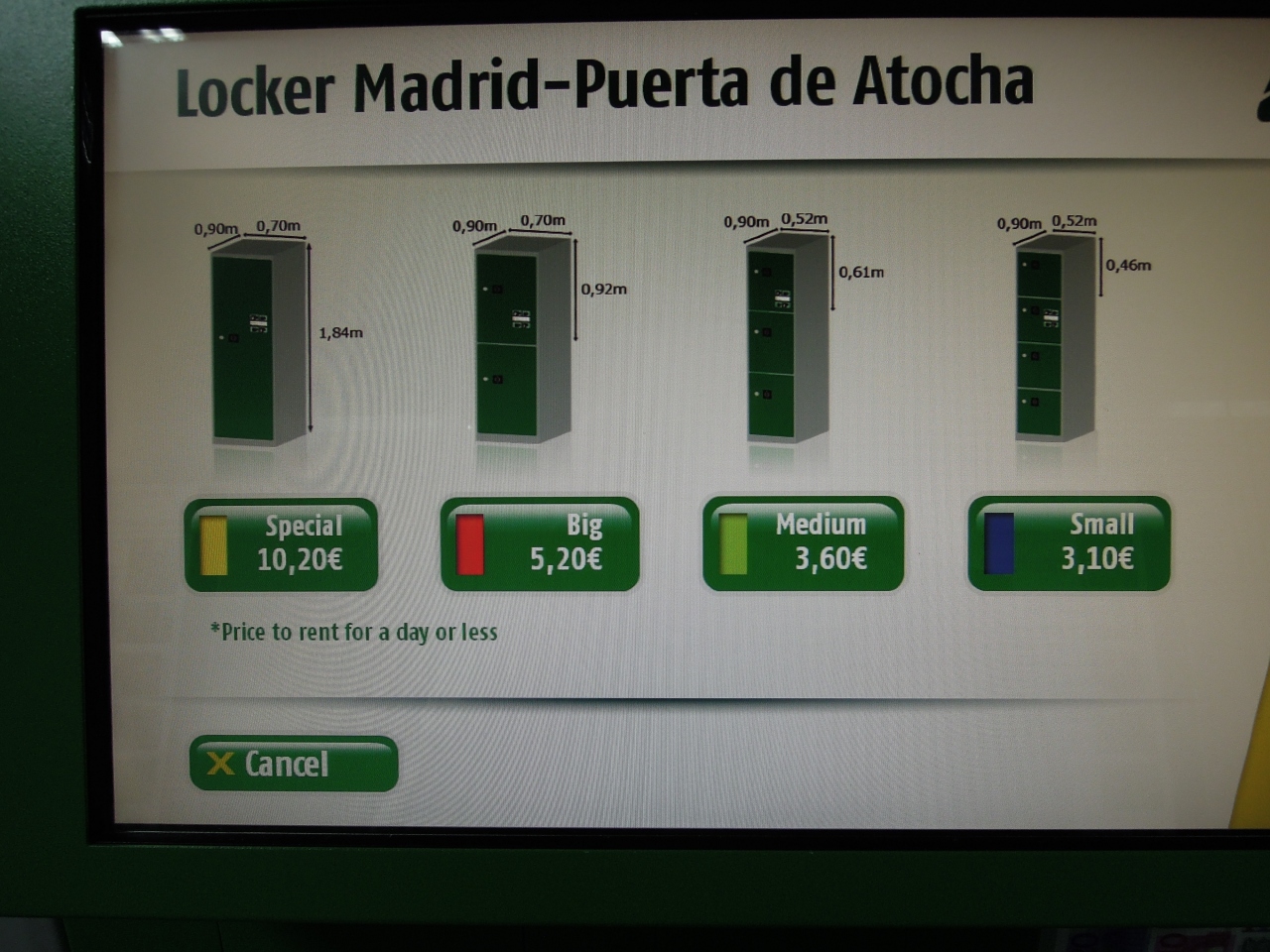 アト―チャ駅から列車に乗る人や着いた人に便利なのが、コインロッカー。
