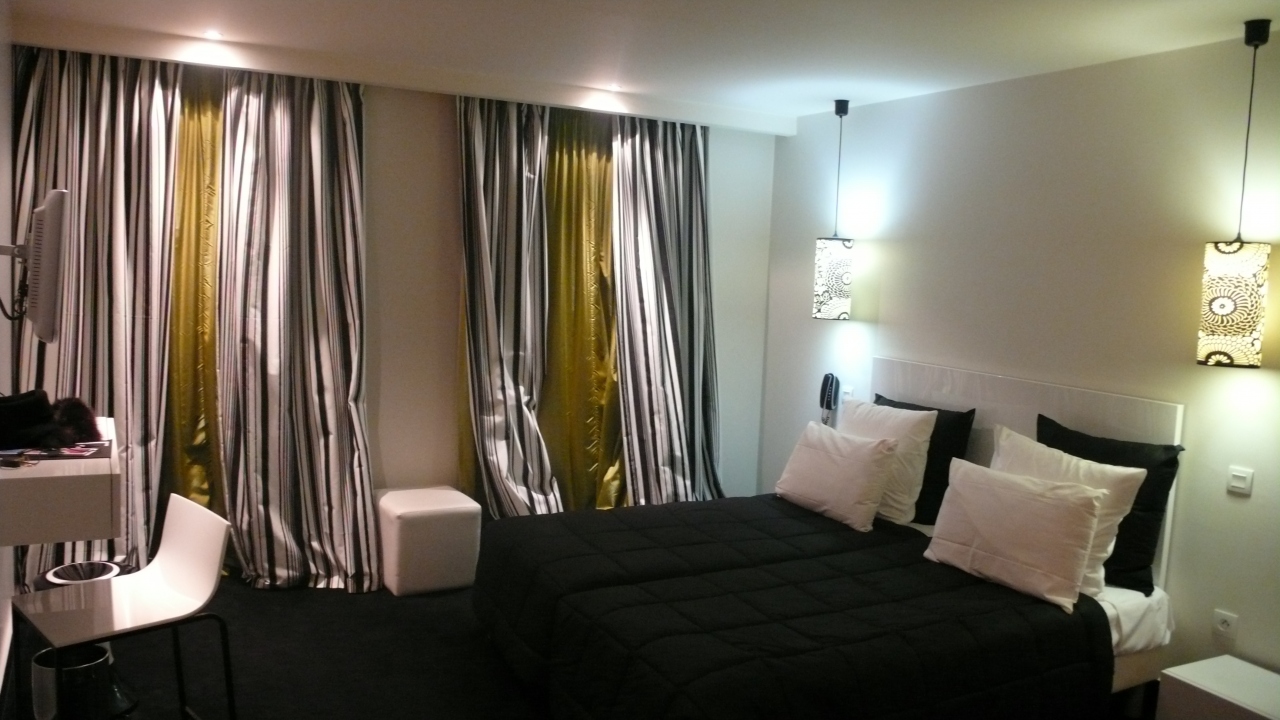 無事チェックインできました。部屋はParis特有の狭さですが、私たちには十分でした。客室やブレックファーストルームは、白と黒のストライプでデザインが統一され大変おしゃれです。いわゆるナショナルチェーンのHOTELが、好みではない私たちには大変思い出深いHOTELです。
