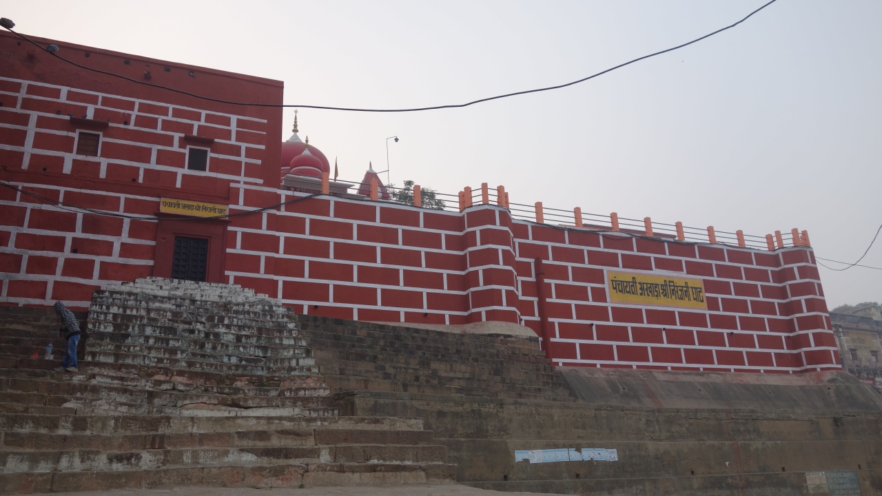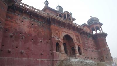 赤い壁(レッドクリフ)が、非常に印象的なガートです。その赤い壁に、黄色地に黒いヒンディー語が非常に印象的でした。汚れているのか風化しているのか、汚い感じが非常に残念です。キレイに塗り直せば良いのになと思うのは、ツーリストのワガママかも知れません。