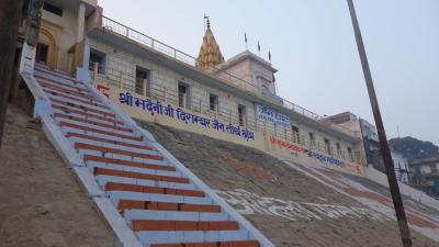 バラナシを訪れる方は、1度は聞いた事のアルであろうゲストハウスが久美子の家だと思いますが、このガートを目印にされると見つけやすいと思います。ガートの端に、かなり大きな看板が見えます。ガート自身は、かなり大きく装飾も素晴らしいです。