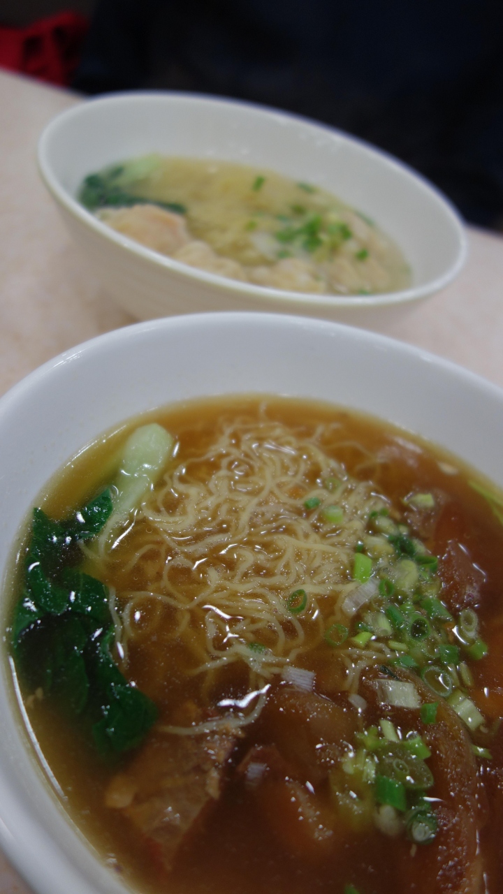 遅めのランチを軽めに取りたいと思い、ホテル近くを散策。偶然見つけたお店です。旅先でのお店を選ぶ基準は、地元の方々の多さ。この店は、昼食どきを外しているにも関わらず地元民でイッパイでした。戴いたのはワンタン麺と牛すじ麺、どちらも美味でした。