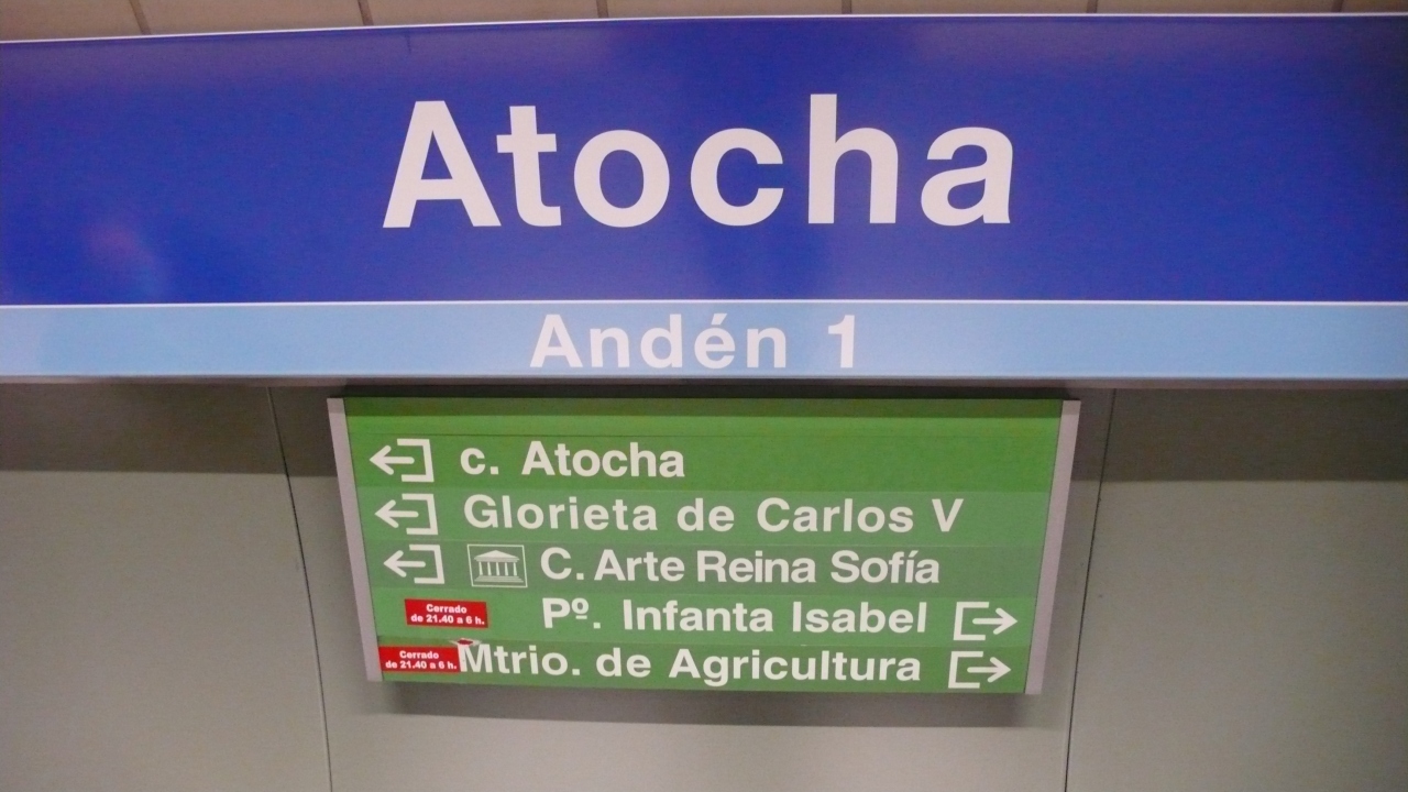 アトーチャ駅とアトーチャレンフェ駅、ヤヤコシイですね。地下鉄のアトーチャレンフェ駅は、アトーチャセルカニアス駅・マドリード プエルタ デ アトーチャ駅と同じと考えてイイと思います。AVE に乗継ぐのも、在来線に乗り継ぐのも、地下鉄の駅はココです。