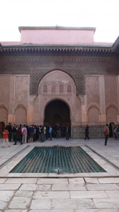 マラケシュにて非常に楽しみにしていたイスラム的建築物です。元神学校との事ですが、2011年に訪れたスペイン・グラダナのアルハンブラ宮殿を連想してしまいます。宗教建築は、西洋・東洋に関わらず、私のとっては非常に興味深いです。多分コレからも思い出に残る、建造物だと思います。