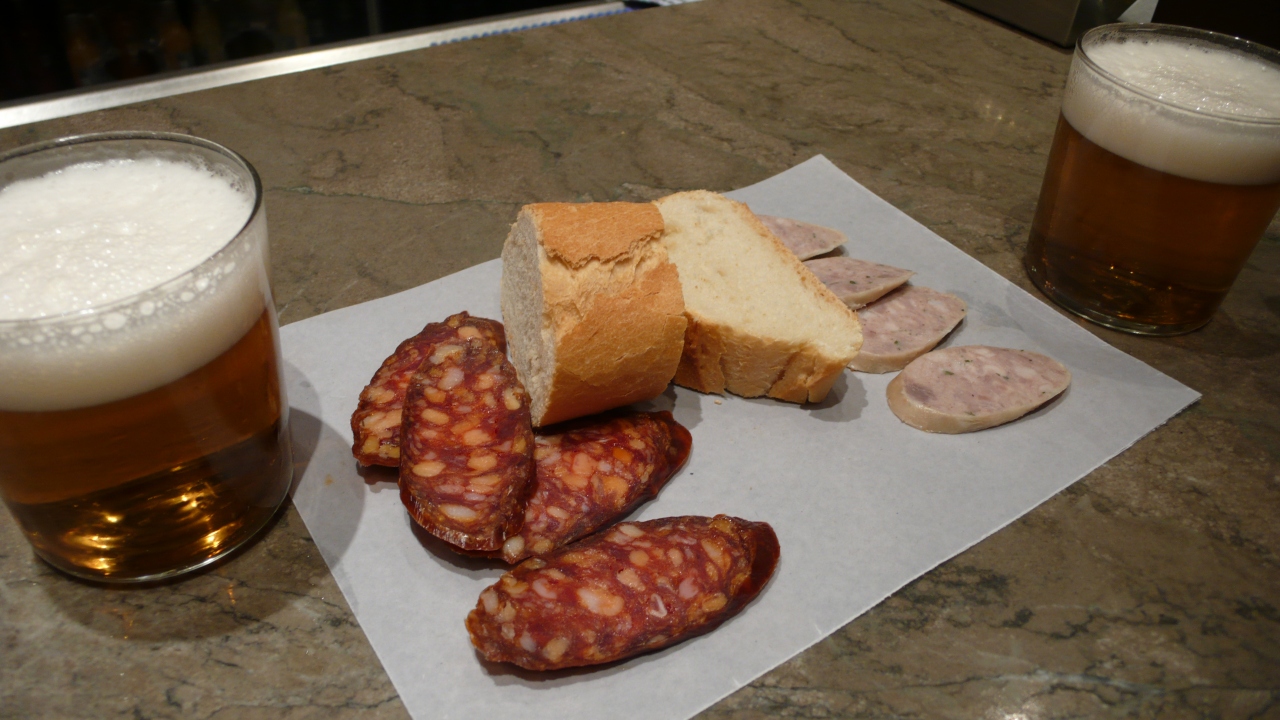 パンとサラミ・ハムが載せられ、どうやら