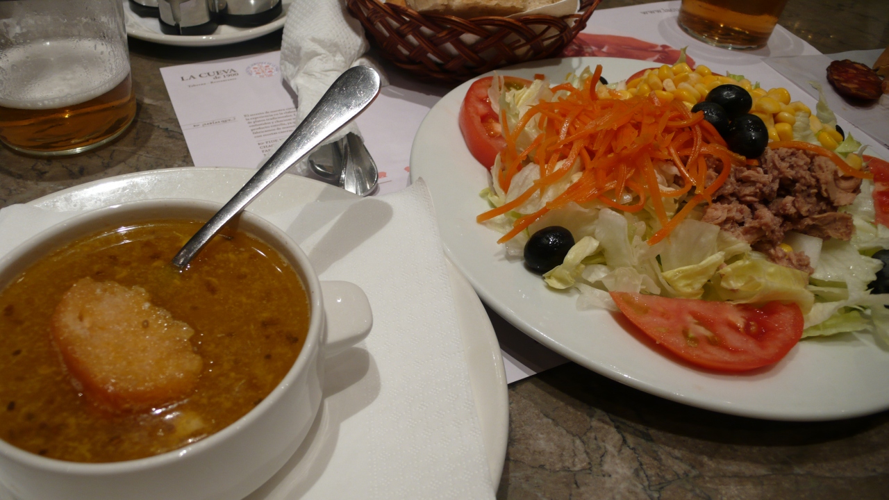 オーダーは、サラダとニンニクスープ。