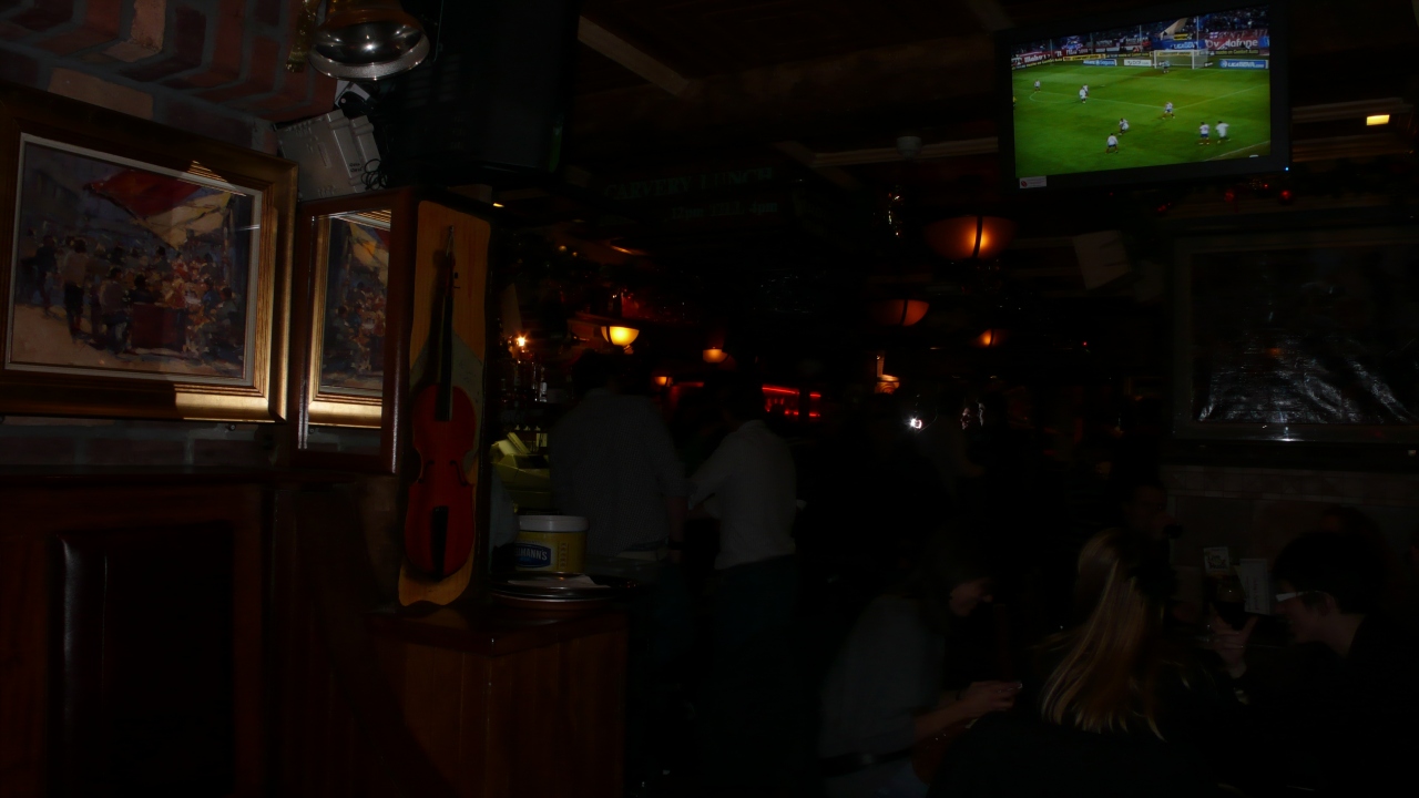数有るアイリッシュ・パブの中で万国の国旗に彩られた