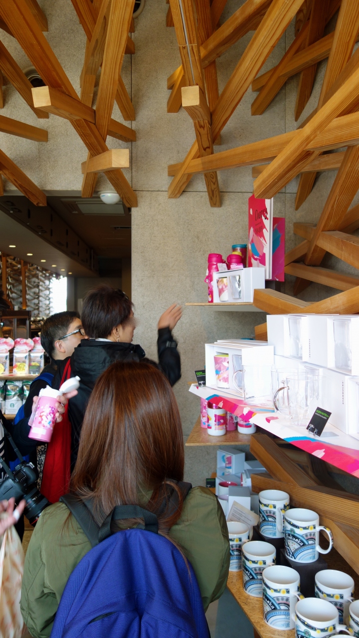 多分デザインが優れていると言う点で、日本で一番有名なスターバックスのお店。コチラもインバウンドな観光客の皆さんでイッパイでした。皆さんのお目当ては、オリジナルデザインの水筒。ヨメさんが欲しがるくらいですから海外の方がほしいのも無理アリマセン。
