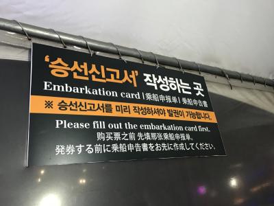 乗り場のチケット窓口の隣の書くスペースで改めて、名前とか記入しなくちゃいけません。そして、パスポートの提示。窓口が2個しかなかったので、少し時間がかかります。手続きが終わったら、乗り場で、トイレして、あとは、並ぶことをお勧めします。