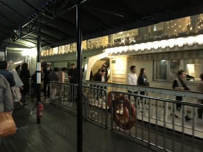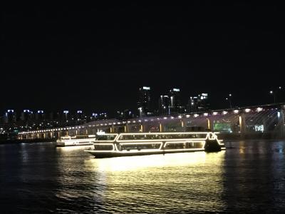 噴水ショーが始まる時は、デッキの人は屋根の部分に退避。橋の下を通ると、デッキ、椅子はずぶ濡れで座ることができなくなるので、船内に移動、または立ち、になります。ある程度、外国人観光客のマナーでイライラすると心構えすると、そうでもなかったとなると思います。この漢江観光は、楽しいし、景色もいいし、気持ちがいいと思います。夜がお勧めです。- 旅行時期